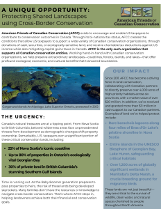 Thank you for including American Friends of Canadian Conservation and its partners in your current and future charitable giving. Please refer to American Friends of Canadian Conservation Case For Support for more information about how your gift will advance our work and partnerships.